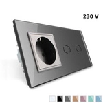 Gniazdo 230V 16A z podwójnym włącznikiem dotykowym i ramką szklaną srebrną (VL-C702EU-64) Livolo