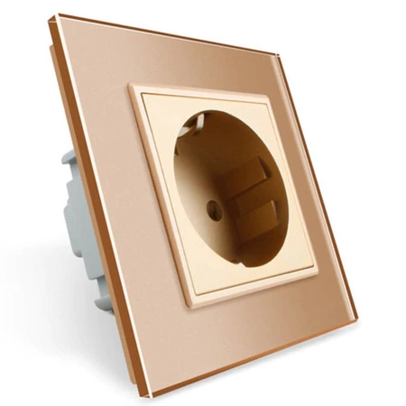 **Kolor złoty** to symbol luksusu i elegancji, dlatego Gniazdo elektryczne Livolo wpisuje się w aktualne trendy wnętrzarskie. Zastosowany w nim wysokiej jakości szkło nie tylko przyciąga wzrok, ale także jest bardzo łatwe do czyszczenia. Dzięki temu Gniazdo elektryczne 16 A marki Livolo łączy w sobie piękno z praktycznością, co czyni go idealnym rozwiązaniem do każdego nowoczesnego wnętrza.