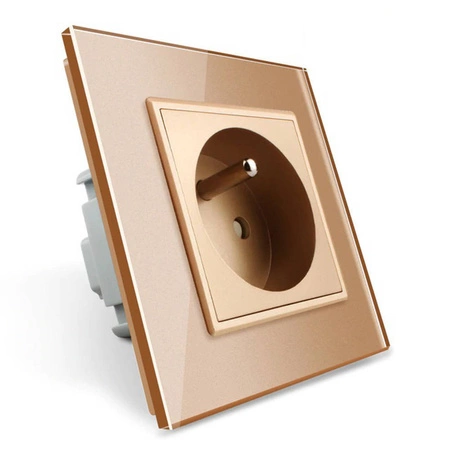 Lampo Gniazdo z bolcem 230V 16A ze złotym panelem szklanym (VL-W01FR-63) to wyjątkowy produkt marki Livolo, który doskonale łączy elegancję z funkcjonalnością. Wykonany z estetycznego, złotego szkła, włącznik prezentuje się niezwykle stylowo i z pewnością będzie ozdobą każdego wnętrza. Idealnie nadaje się do nowoczesnych, minimalistycznych pomieszczeń, stanowiąc jednocześnie praktyczny element wyposażenia.