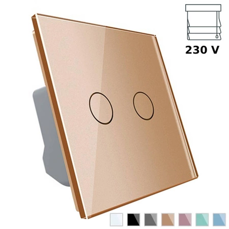 Włącznik Livolo o numerze katalogowym VL-C702W-63 jest dostępny w kolorze złotym, co sprawia, że doskonale komponuje się z różnorodnymi stylami aranżacyjnymi. Zastosowanie szkła w panelu sprawia, że produkt nie tylko wygląda elegancko, ale również jest wyjątkowo trwały. Wbudowany moduł roletowy umożliwia łatwe obsługiwanie rolet i zasłon, co czyni codzienne życie bardziej komfortowym.