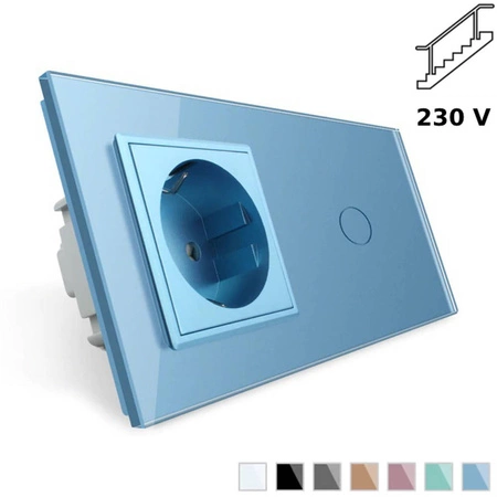 Gniazdo 230V 16A z włącznikiem krzyżowo-schodowym w niebieskiej ramce szklanej (VL-C701SEU-69) Livolo