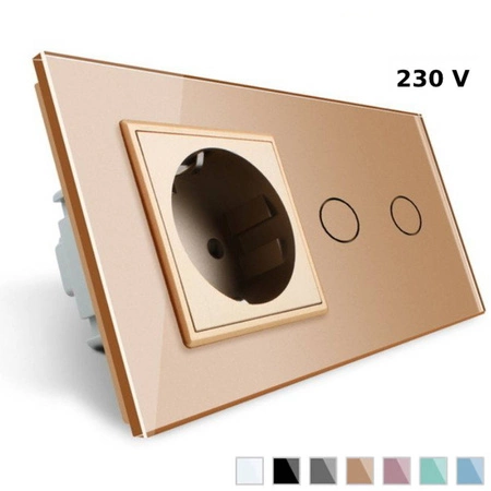 Lampa Gniazdo 230V 16A z włącznikiem dotykowym podwójnym z ramką szklaną Złotą (VL-C702EU-63) od marki Livolo to idealne rozwiązanie dla tych, którzy szukają elegancji i nowoczesności w swoim wnętrzu. Ten stylowy włącznik nie tylko spełnia funkcje praktyczne, ale również staje się doskonałym elementem dekoracyjnym, który podkreśli charakter każdego pomieszczenia. Złoty kolor ramki oraz panelu ze szkła kryształowego sprawia, że produkt przyciąga wzrok i dodaje prestiżu każdemu wnętrzu.