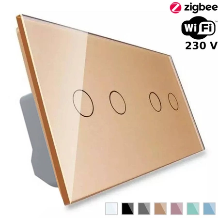 Podwójny włącznik dotykowy EC Wi-Fi z panelami szklanymi w kolorze złotym 2 + 2 (VL-C7022EC-63) Livolo